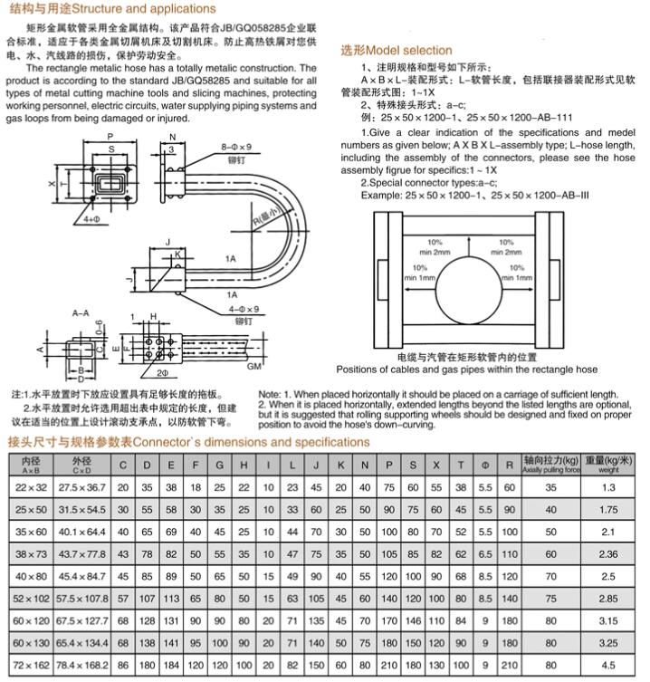 結構與用途:矩形金屬軟管采用全金屬結構。該產品復合JB/GQ058285企業(yè)聯合標準,適應于各類金屬切屑機床及切割機床。防止高熱鐵屑對您供電、水、汽線路的損傷,保護勞動安全。