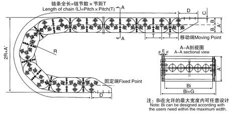 3.TH特大堅固鋼拖鏈**大限度的改進了拖鏈的受力情況,時拖鏈的使用壽命可達往復運行30萬次以上。