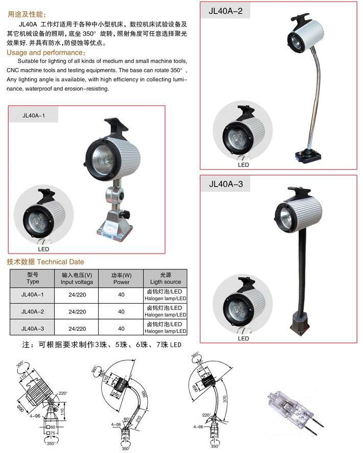 產(chǎn)品名稱:JL40A鹵鎢泡/LED工作燈