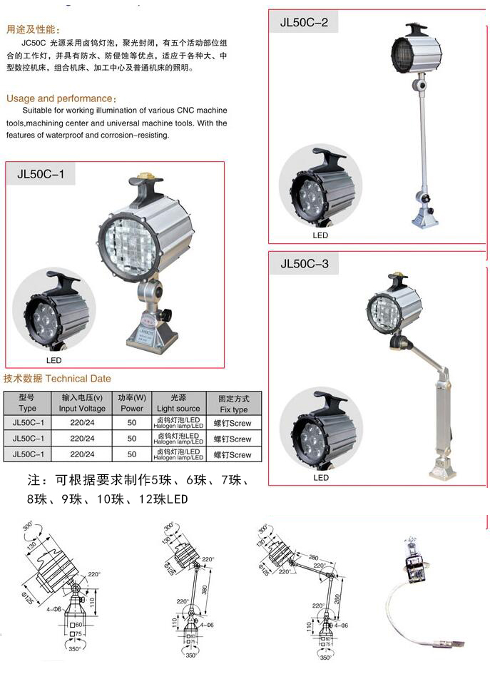 產(chǎn)品名稱:JL50C鹵鎢泡/LED工作燈