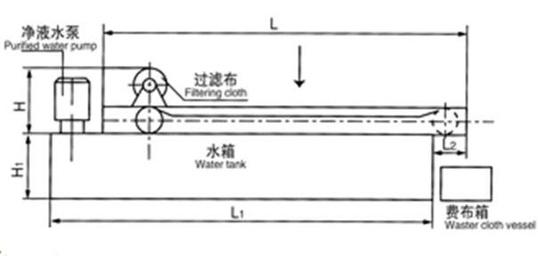 紙帶過(guò)濾機(jī)是由液箱、集污箱、過(guò)濾無(wú)紡布/紙帶、減速機(jī)、傳動(dòng)結(jié)構(gòu)、發(fā)訊結(jié)構(gòu)、液泵等幾部分組成。